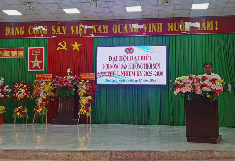 Ngày 13/12/2025, Ban Thường vụ Đảng ủy phường Thới Sơn tổ chức Đại hội đại biểu Hội Nông dân phường Thới Sơn lần thứ I, nhiệm kỳ 2025–2030 với sự tham dự của 40 đại biểu đại diện cho 1.588 hội viên nông dân. Đại hội đã thảo luận, thống nhất thông qua Nghị quyết nhiệm kỳ mới; nghe báo cáo phương hướng, mục tiêu, nhiệm vụ công tác Hội; công bố quyết định nhân sự và ra mắt Ban Chấp hành khóa I. Đại hội diễn ra trong không khí dân chủ, đoàn kết, thể hiện quyết tâm xây dựng tổ chức Hội vững mạnh, góp phần phát triển nông nghiệp, nông dân, nông thôn và xây dựng phường Thới Sơn ngày càng giàu đẹp, văn minh.