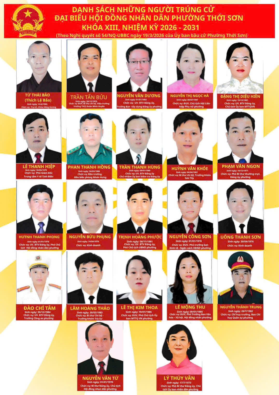Danh Sách Chính Thức Những Người Ứng Cử Đại Biểu HĐND Phường Thới Sơn khoá XIII, Nhiệm Kỳ 2026 - 2031