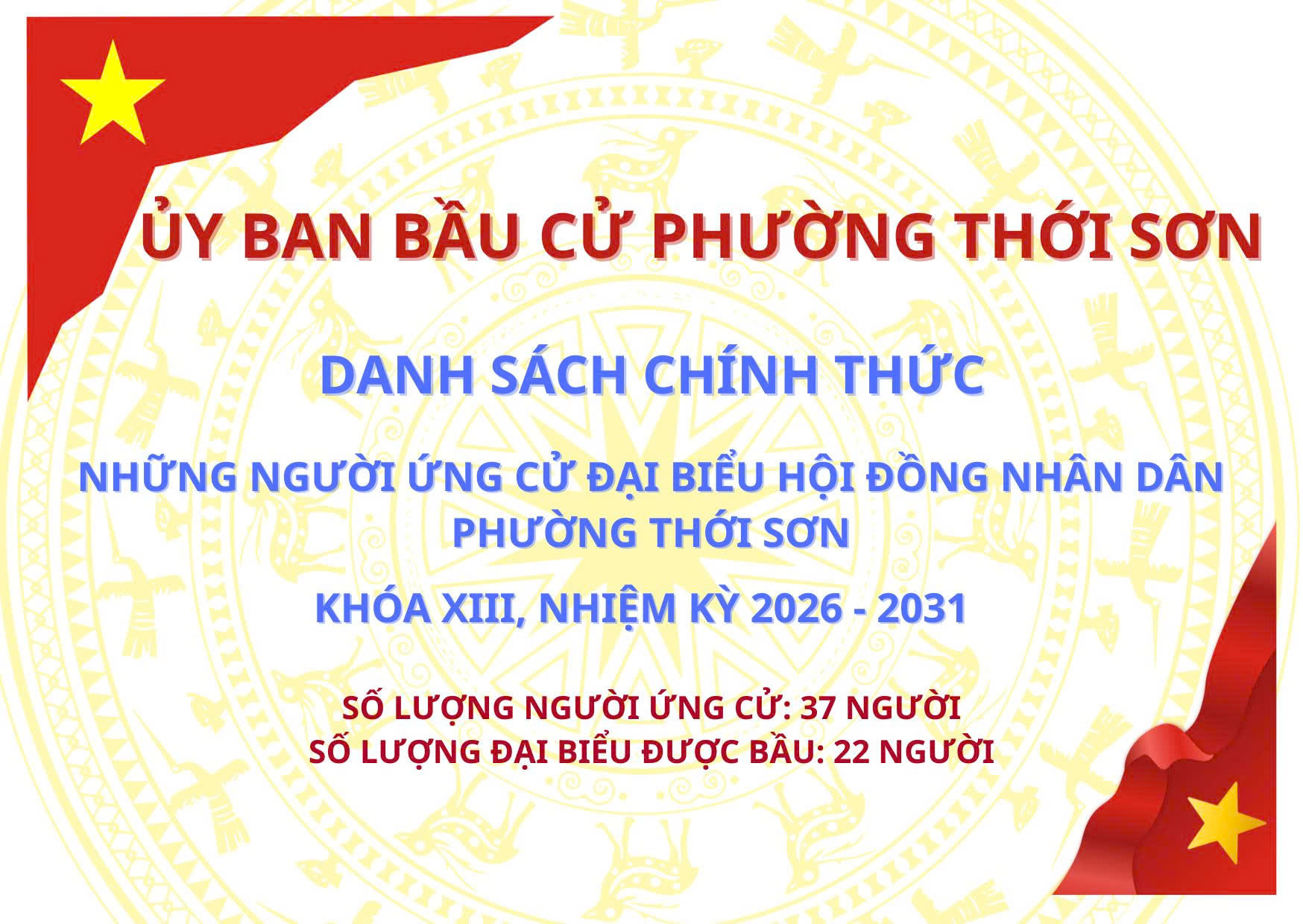 Danh Sách Chính Thức Những Người Ứng Cử Đại Biểu HĐND Phường Thới Sơn khoá XIII, Nhiệm Kỳ 2026 - 2031
