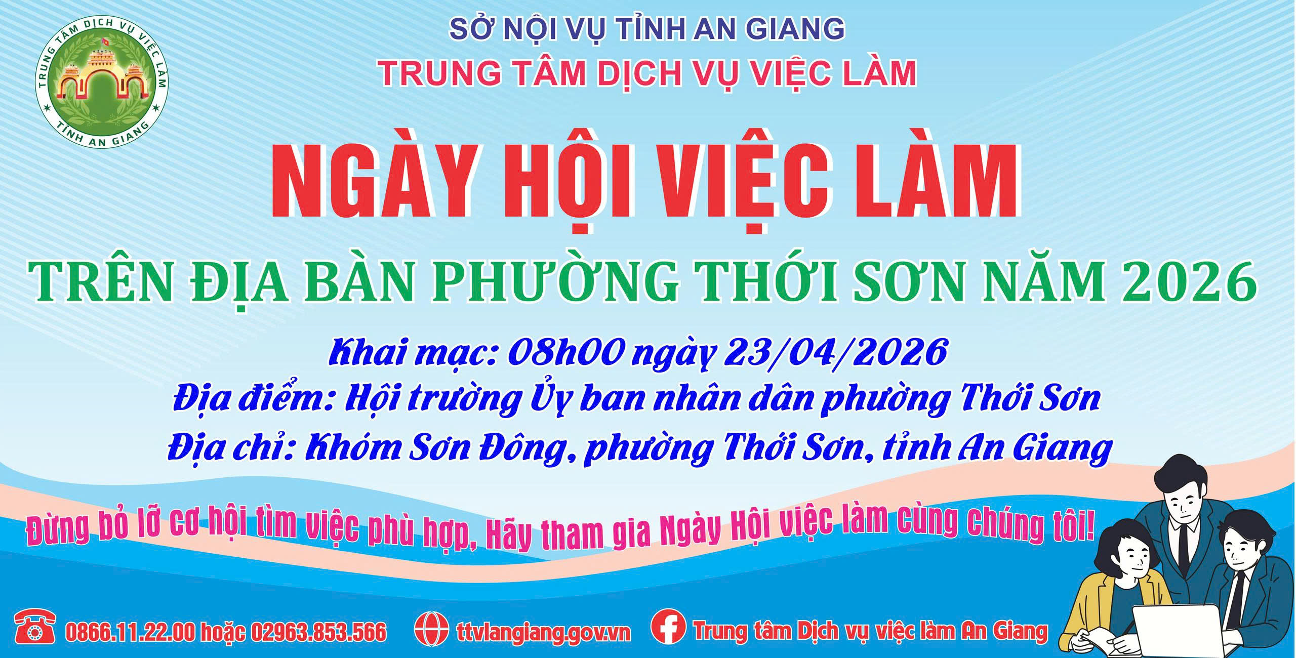 Nhằm tạo điều kiện thuận lợi cho thanh niên và người lao động trên địa bàn được tiếp cận trực tiếp với các doanh nghiệp có nhu cầu tuyển dụng, đồng thời nắm bắt thông tin về thị trường lao động trong và ngoài nước, UBND phường Thới Sơn đã phối hợp cùng Trung tâm Dịch vụ việc làm tỉnh An Giang xây dựng kế hoạch tổ chức Ngày hội việc làm năm 2026. Đây là hoạt động thiết thực nhằm giúp người lao động tìm được những địa chỉ việc làm tin cậy, có thu nhập ổn định để vươn lên phát triển kinh tế gia đình và đảm bảo an sinh xã hội tại địa phương.
